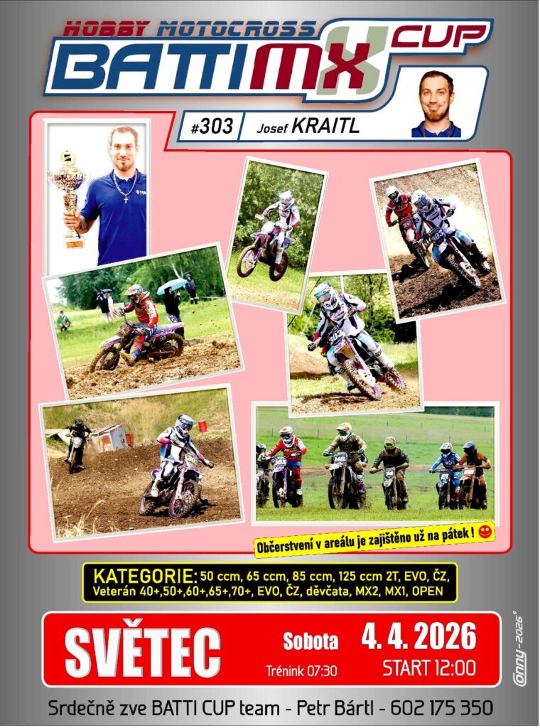 Začátek sezóny je za dveřma a Batti Mx Cup začíná již příští týden v sobotu 4.4.2026 ve Světci