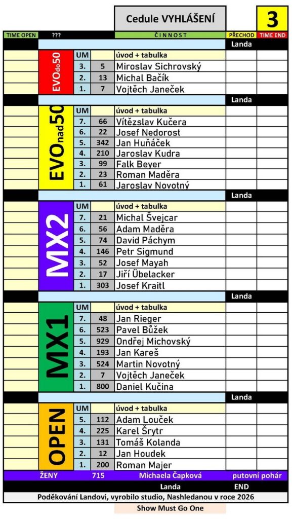 Cena registrace : 800 Kč zasílejte ,tak jako doposud , nebo na účet 131-2120100267/0100 , do zprávy jméno jezdce , startovní číslo , kategorie .